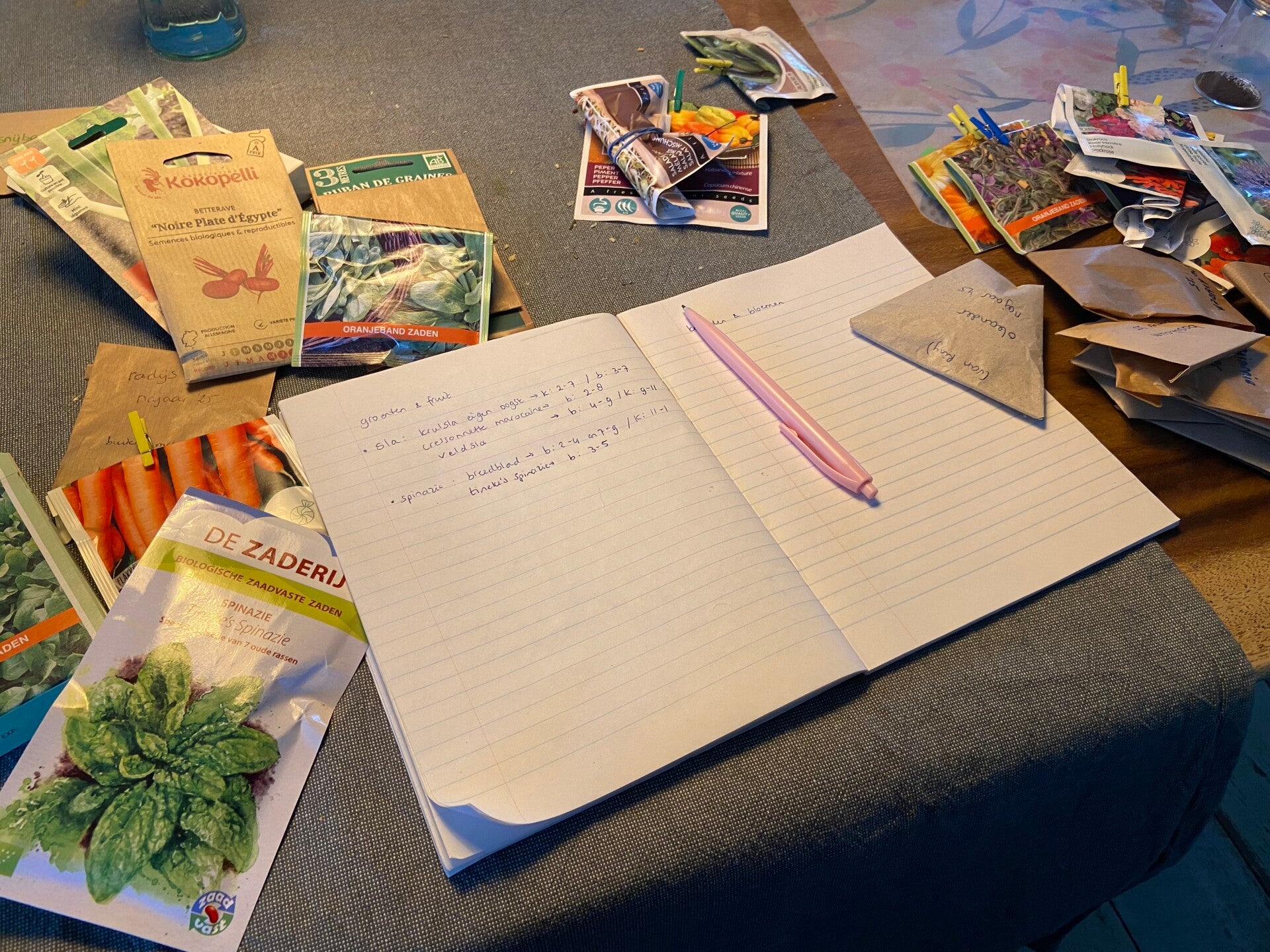 Ook begint het weer te kriebelen bij mij.. Altijd na de feestdagen. Dan begint voor mij het nieuwe moestuinseizoen weer! Eerst maar eens de kast in duiken en kijken welke zaden ik nog heb liggen. Nou, een heleboel! Gerangschikt onder groenten, kruiden en bloemen heb ik een overzicht gemaakt van wat ik nog heb. En een wensenlijst. Beide lijsten zijn net zo lang haha. Zaden deel ik vaak met mijn ouders, die een grote volkstuin hebben. Dus komende weken eens kijken wat we erbij gaan kopen. Heel veel zin om weer te beginnen!