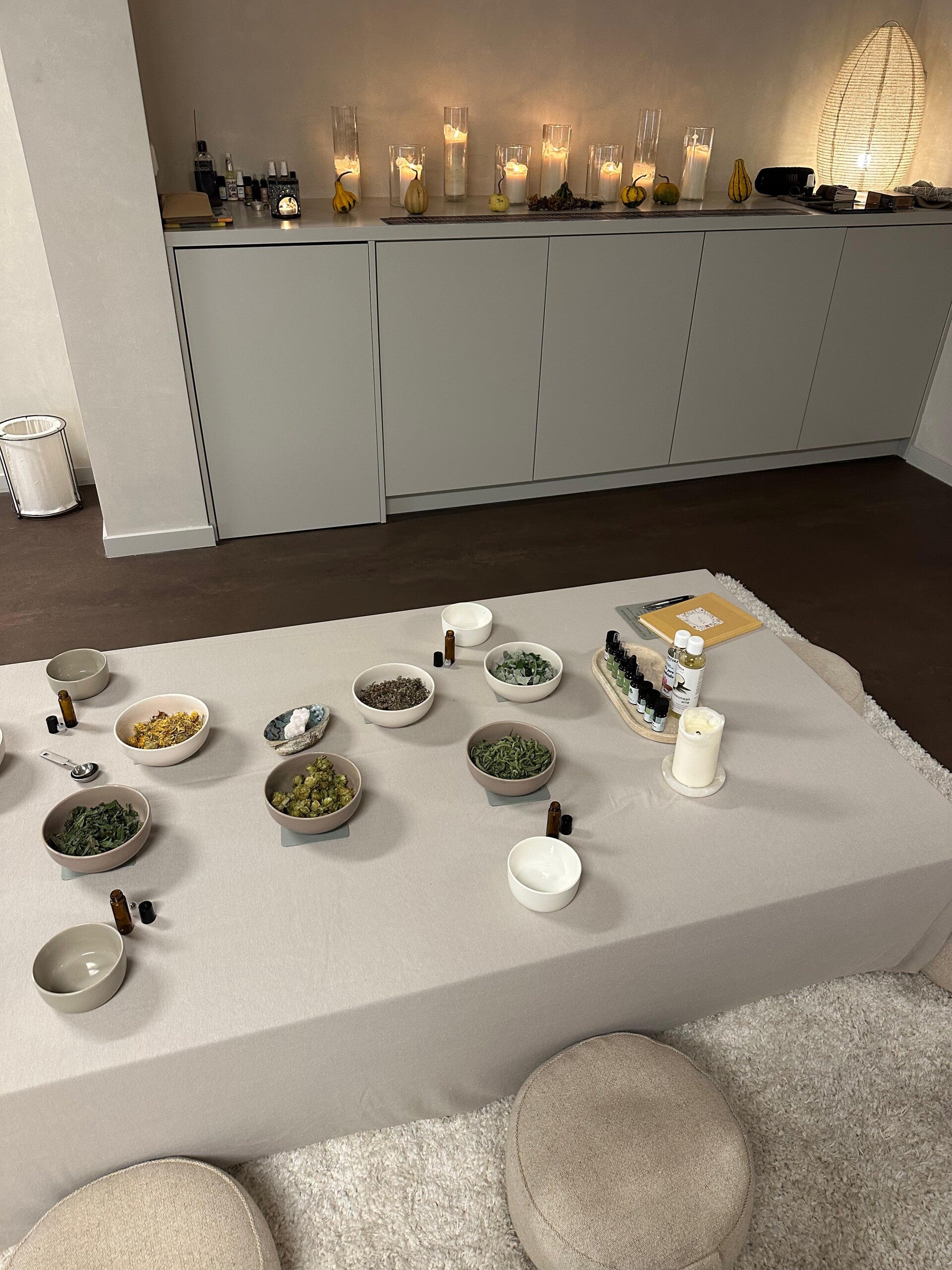 Zondag 2 november stond mijn eerste workshop op het programma! Samen met House of Nuria had ik een middag vol met kennis over kruiden voorbereid. De vijf deelnemers maakten hun eigen kruidenthee, stelden zelf een etherische olie roller samen en maakten een prachtige smudge stick. De middag stond in het teken van kruiden die de vrouwelijke hormonale cyclus ondersteunen, zoals framboosblad, duizendblad, goudsbloem en hop. Als je benieuwd bent naar welke thee ik speciaal voor deze workshop samenstelde, kijk dan bij de kruidenthee recepten. Het was een erg gezellige middag!