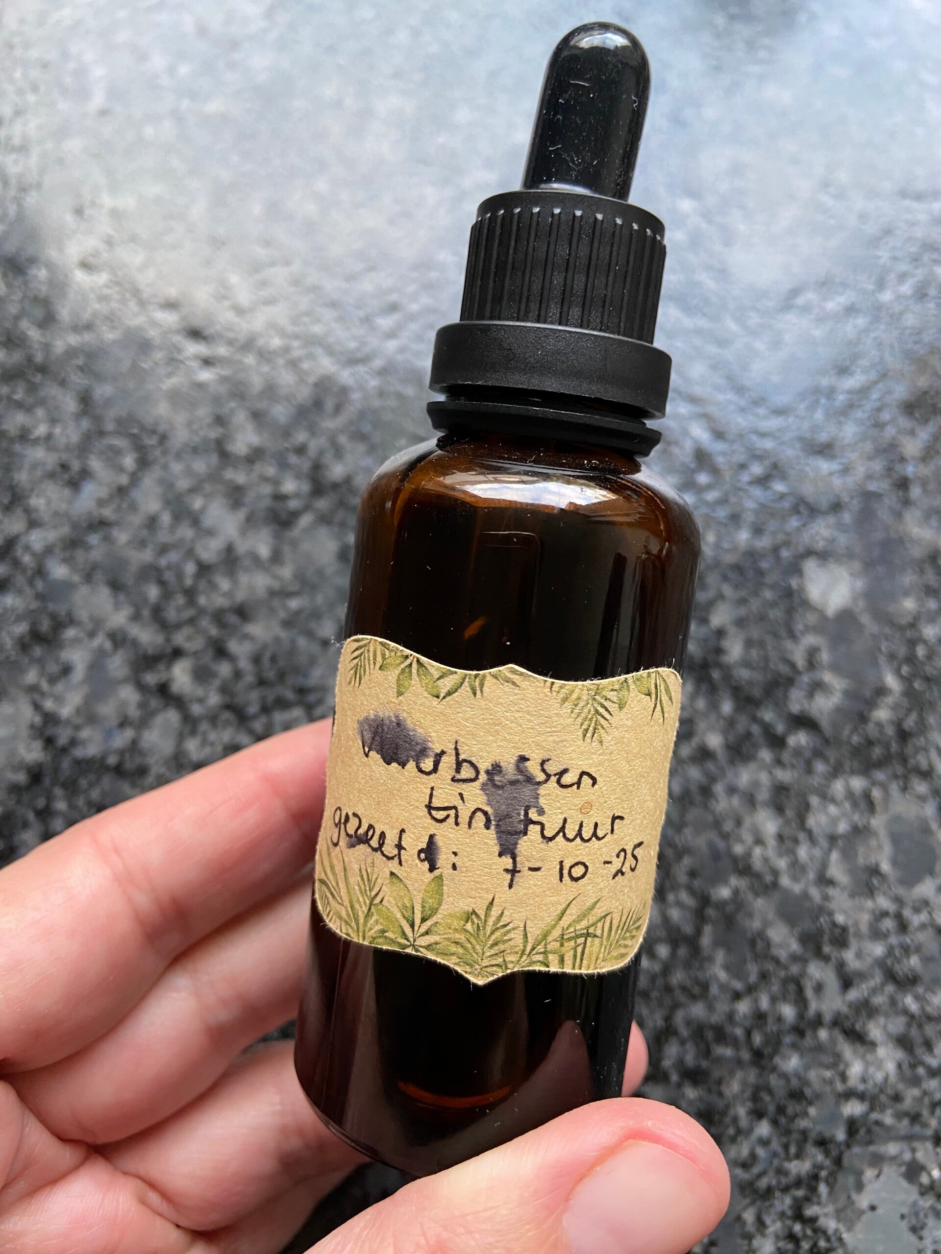 Deze week kreeg ook onze vlierstruik eindelijk haar vaste bestemming. Ik ontdekte deze struik in het voorjaar achter een hoop zooi in een stuk van onze tuin dat we nog niet hadden aangepakt. Toen gaf ik haar een tijdelijke plek waar ze ruimte had om te groeien. Zaterdag haalde ik haar uit deze tijdelijke plek en kreeg ze een nieuwe plek. De kluit was al flink gegroeid. Hieruit blijkt hoe krachtig de vlier is! Ze staat prachtig op haar nieuwe plek en ik hoop echt dat ze het hier ook goed gaat doen. Stel je voor, in het voorjaar al vlierbloesems.. Ik kan niet wachten! Met vlierbessen kun je trouwens een siroop maken of een tinctuur. De laatste is wat krachtiger, maar minder geschikt voor kinderen. Ideaal om te gebruiken in dit griepseizoen, als preventie, of als je verkoudheidsklachten hebt. Het haalt de scherpe kantjes er vanaf en zorgt dat je sneller herstelt. Zoals je kan zien is de tinctuur hier in huis al goed gebruikt!