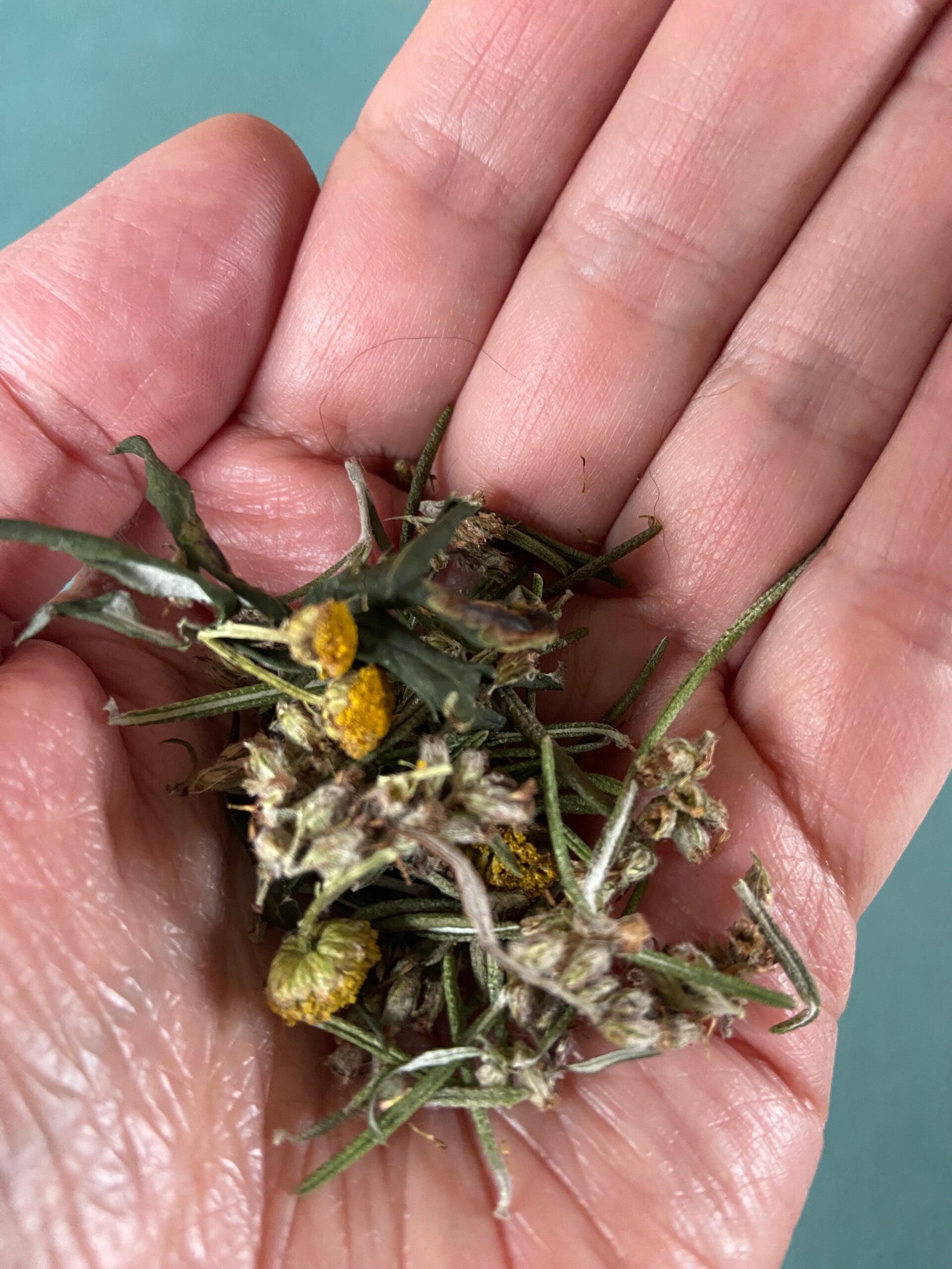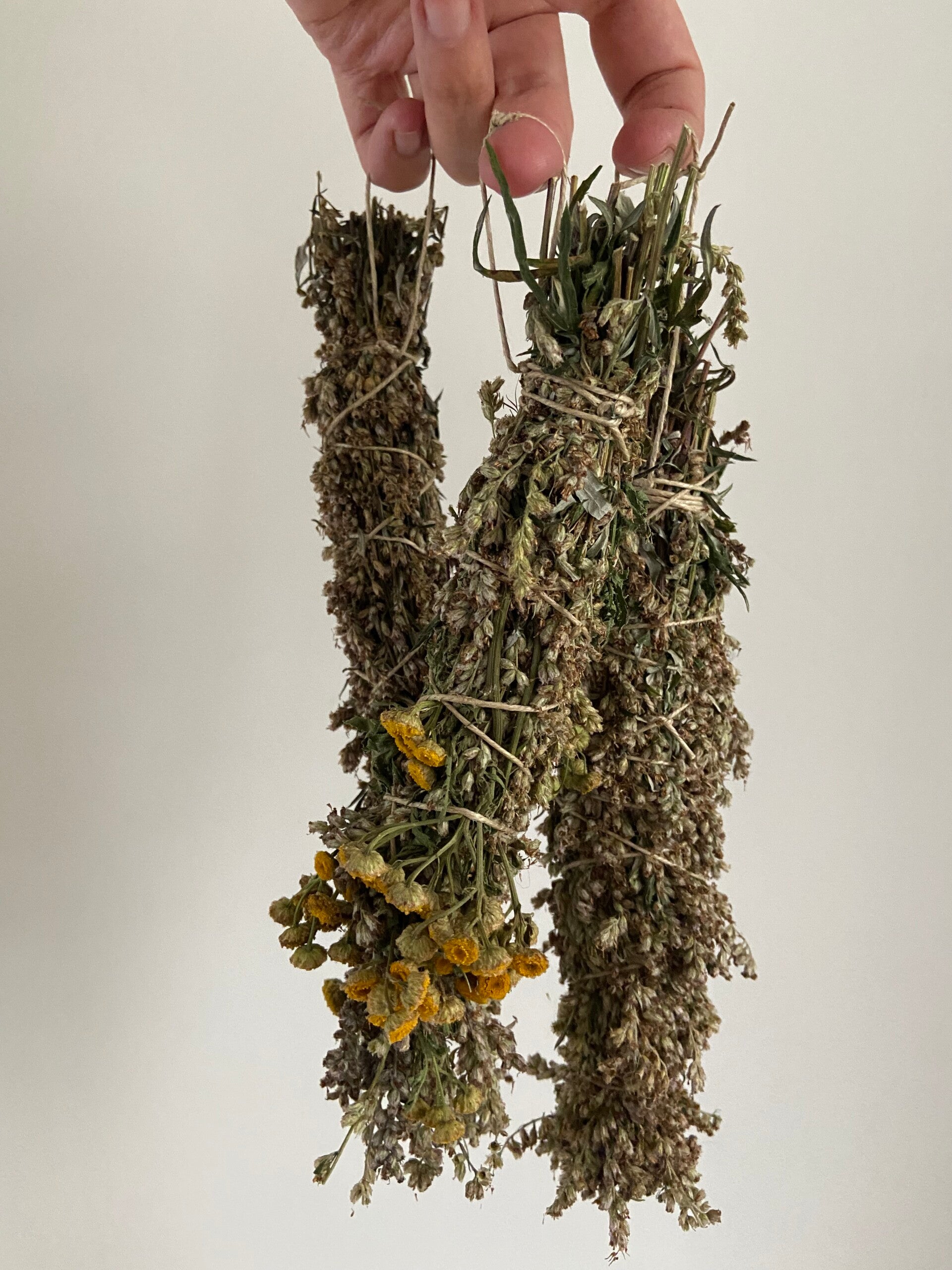 Van de workshop van vorige week waren er nog wat gedroogde kruiden over. Ik maakte 3 smudge sticks van bijvoet en boerenwormkruid. Smudge sticks kun je branden en met de rook kun je ruimtes of personen reinigen. Normaal maak je deze van verse kruiden en laat je ze daarna hangend drogen. Maar omdat ik geen kruiden wil weggooien, deed ik het dit keer met de gedroogde kruiden. Kruimelt iets meer, maar ach, dat ruim ik daarna wel weer op. Bij de allerlaatste restjes voegde ik nog gedroogde rozemarijn toe voor een heerlijk geurende wierook, die helpt om dieper in een meditatie te zakken.