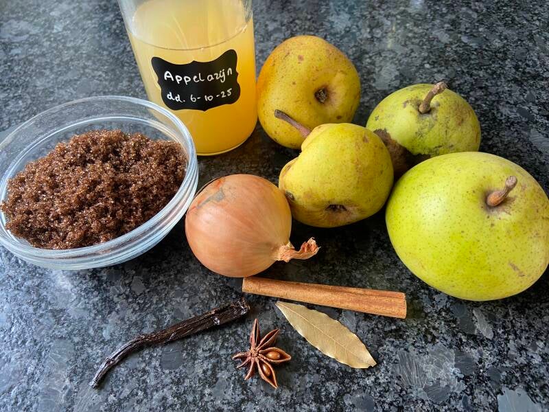 Deze chutney is heerlijk bij een blokje (oude) kaas, maar ook bij gegrilde groenten, een tosti of een quiche. Je hebt de volgende ingrediënten nodig voor ongeveer 2 (jam)potjes vol: